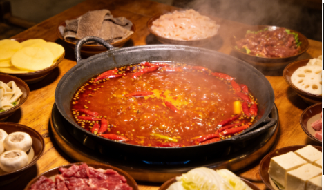 火锅,作为一种独特的餐饮业态与消费模式,是指以锅具为载体,以沸汤或热油为传热介质,由消费者在餐桌上即时汆烫、煮熟各类预制食材,并佐以个性化蘸料食用的餐饮形式。其核心特征在于“烹饪与消费过程合一”及“风味的高度定制化”。