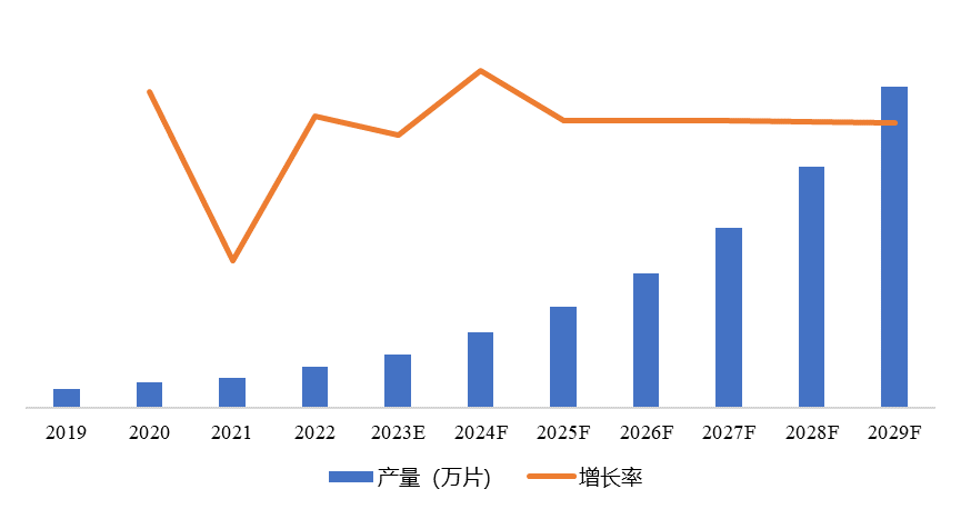 图表 1 中国AI视觉芯片行业产量及增长率变动趋势