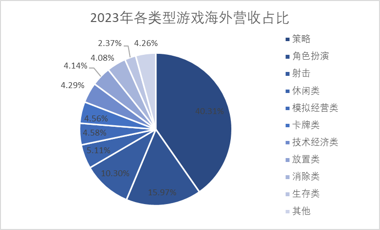 图表 2 2023年各类型游戏海外营收占比