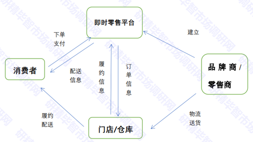 借助5G、大数据、人工智能等新兴阶级、信息技术手段,即时零售企业将被赋予更多能力,市场规模也将加速扩大。根据市场调研的数据显示,2022年我国即时零售市场规模达5946亿元,2019-2022年均复合增长51.6%,相当于社会消费品零售总额1.4%,实物网络零售总额5.0%。研精毕智分析师预测,2024年中国即时零售市场规模将增至11560亿元。