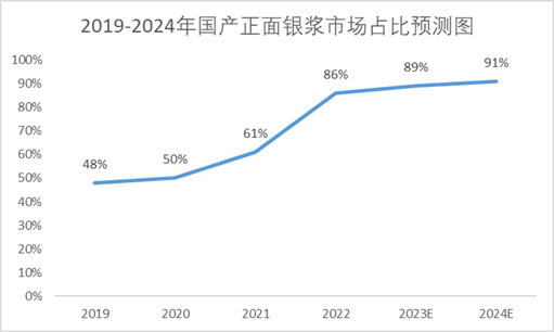 图表 1 2019-2024年国产正面银浆市场占比预测图