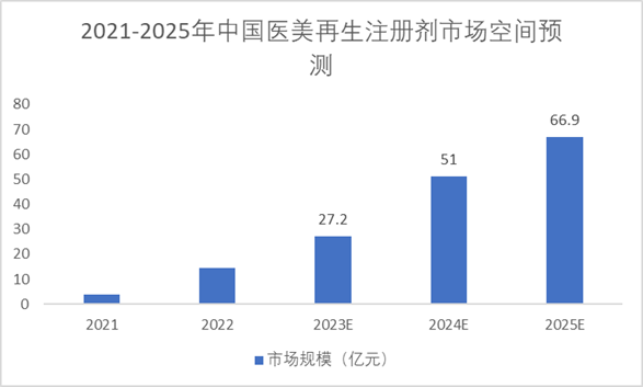 根据研究报告显示,到2027年中国大陆医美再生注射剂市场空间预计可达到约115.2亿元人民币,2025-2027年期间复合增长率约为31.2%。