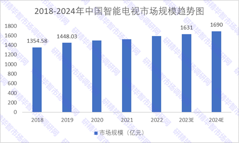 预计随着技术的不断发展,未来智能电视市场规模将持续增长,2023年智能电视市场规模将达1631亿元,2024年智能电视市场规模有望增至1690亿元。