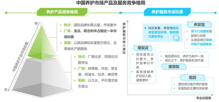 养护服务方面,多领域的竞争者纷纷跨界入局,养护服务各机构竞争激烈。这当中,养发馆作为专注于提供养护发服务的机构,面对来自不同领域的竞争者(如理发店、美容院、医院等)跨界入局,其服务具有更高水准的专业性。研究报告显示,随着消费者对毛发健康重视程度的提升,养发馆等专业养护服务机构的市场前景广阔。