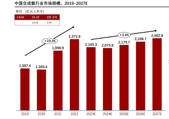 中国合成氨行业市场规模与国民经济发展、农业生产情况高度关联。过去五年间,受下游氮肥需求量持续增长以及农业用氨和工业用氨需求规模持续扩大的原因,中国合成氮行业产量有较大提升。