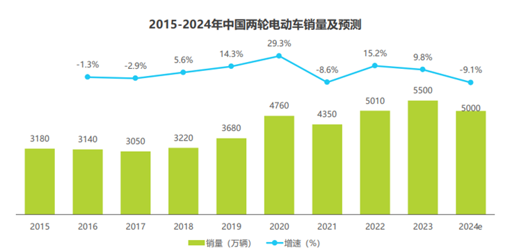 据市场调研统计,2018年发布的《新国标》政策催生非国标车替换潮,随着政策的逐步推行,引来了3~5年的市场增长,随着《新国标》政策缓慢落幕,国内两轮电动车市场销量将回归到常态替换、少量新增的状况。