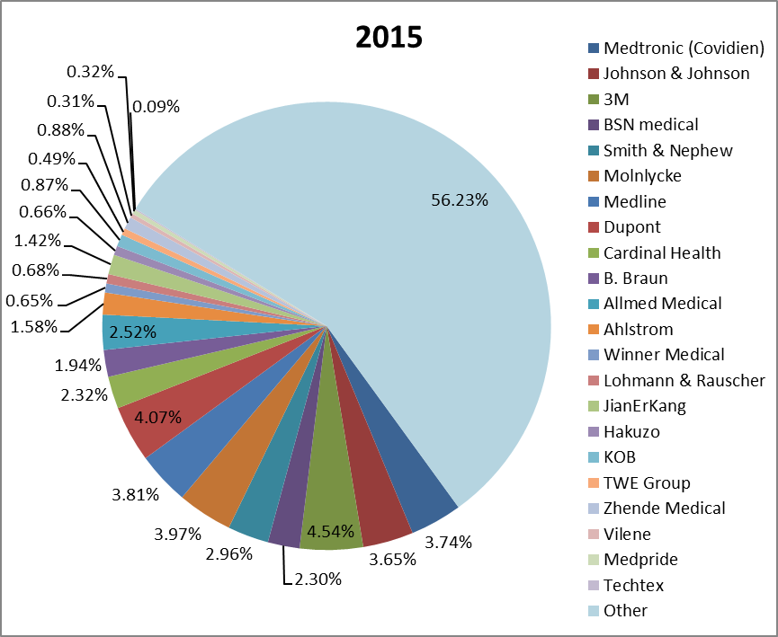 图2015全球Medical Textiles(医用纺织品)主要企业市场份额(%)(营收)