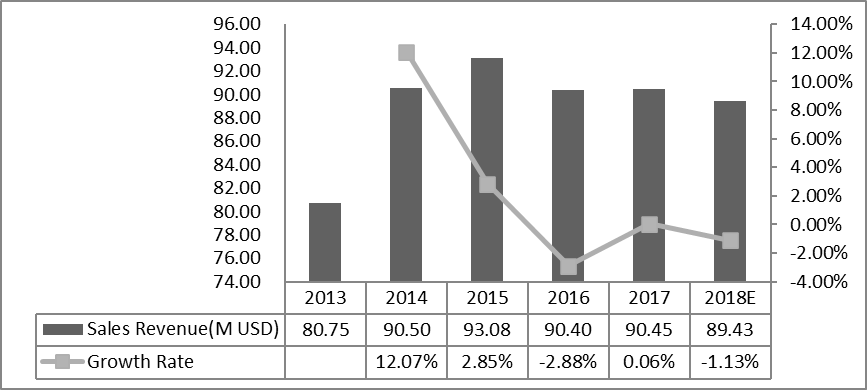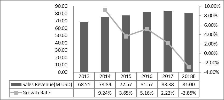 欧洲激光直接成像(LDI)系统收入(百万美元)和增长率(2013-2018)