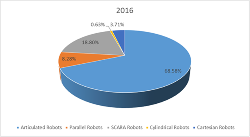 图:2016年按类型划分的工业机器人收入市场份额(%)