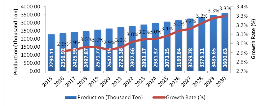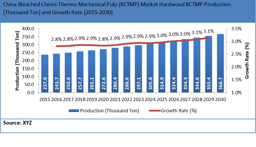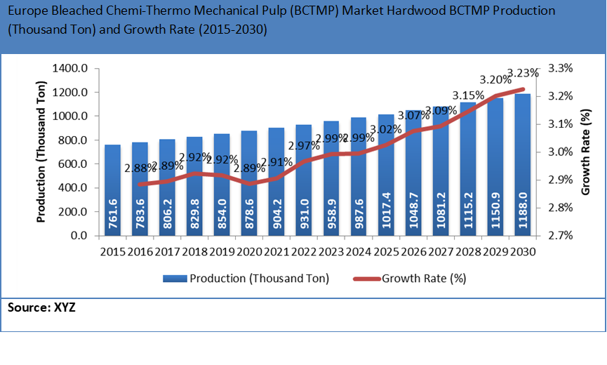 图硬木BCTMP的全球漂白化学-热机械浆(BCTMP)市场产量(千吨)(2015-2030年)