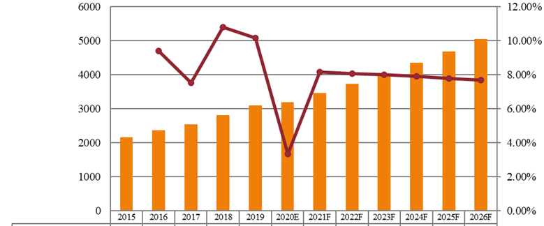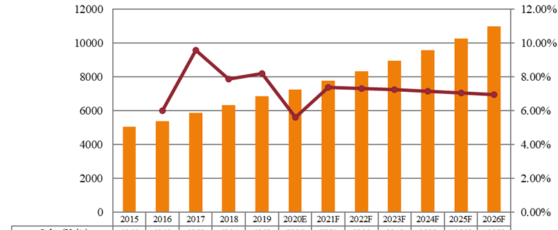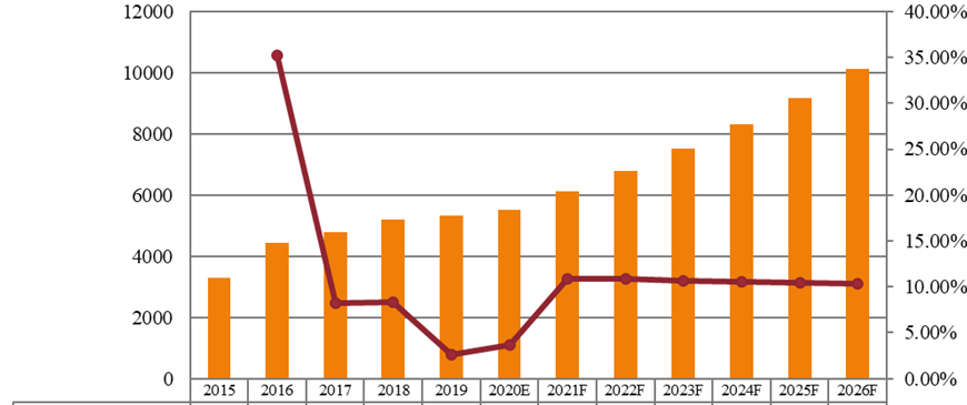 图亚太气动管道系统销售额(单位)和增长率(2015-2026年)