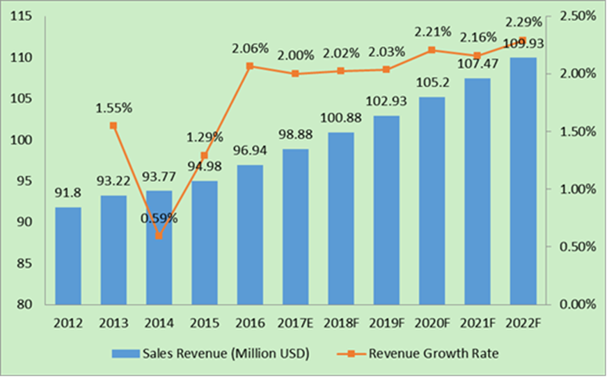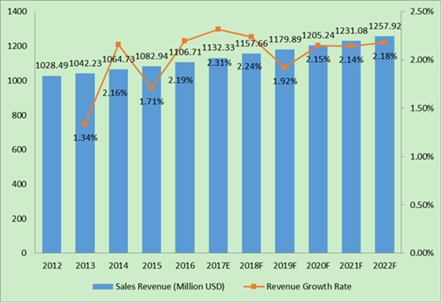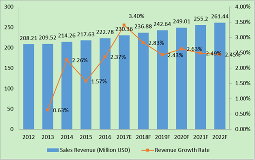 14欧洲铝炊具市场规模(收入和销售额)预测(2017-2022年)