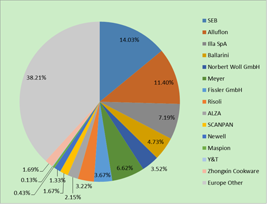 2.欧洲铝炊具市场竞争依然激烈。目前,铝炊具市场有许多参与者。欧洲市场上的热门品牌/公司包括SEB、Alluflon、Illa SpA、Ballarini、Norbert Woll GmbH、Meyer、Fissler GmbH、Risoli、ALZA、SCANAPAN、Newell、Maspion、Y&T、众信炊具等。主要品牌的研发和制造地点集中在中国、东南亚、澳大利亚以及一些北美和欧洲国家。