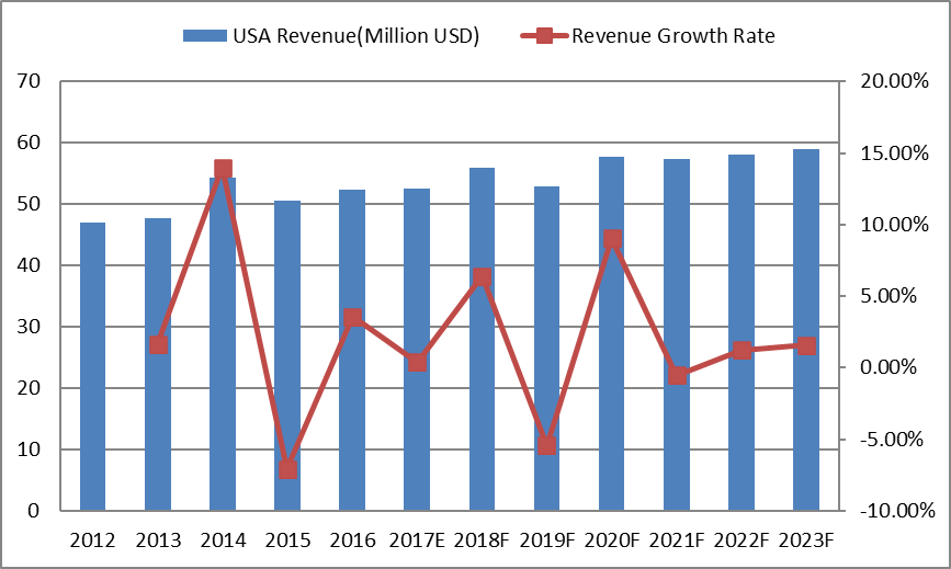 12.2.1美国煅烧无烟煤产量(K MT)和收入(百万美元)预测(2018-2023年)