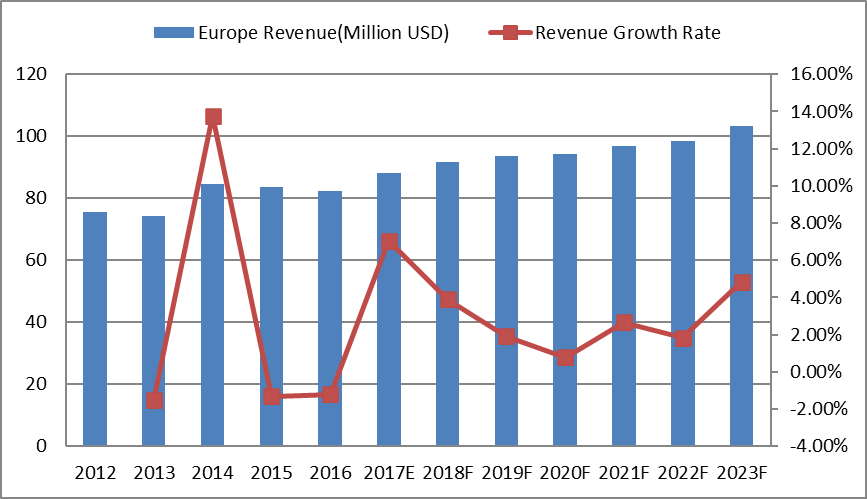 12.2.2欧洲煅烧无烟煤产量(K MT),收入(百万美元)预测(2018-2023年)