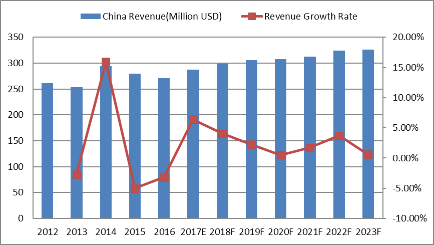 2.2 2012-2017年全球煅烧无烟煤收入(百万美元)和制造商份额(%)