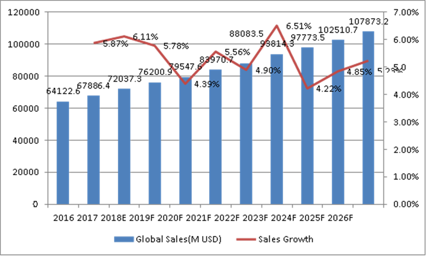 9.1 2013-2018年全球锻件销售收入(百万美元)和增长率