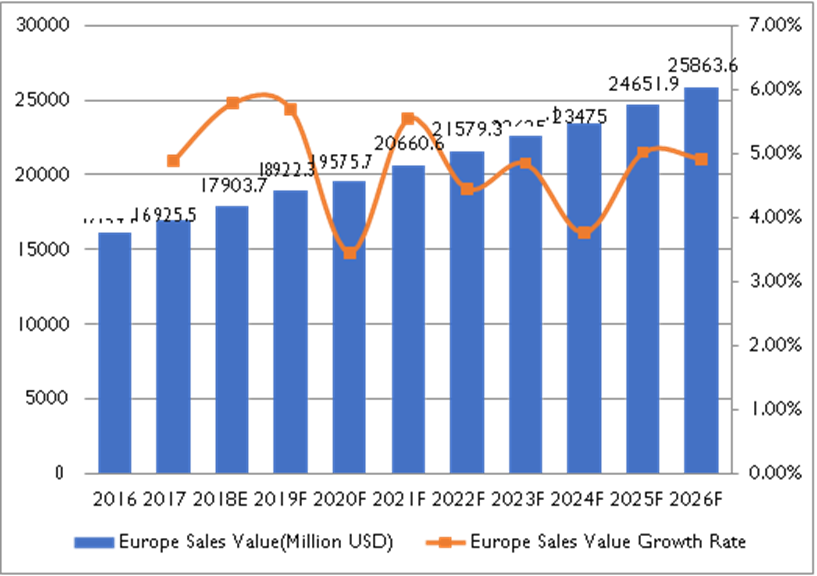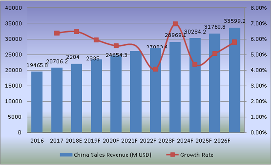 9.3.3 2013-2018年法国销售收入(百万美元)和增长率