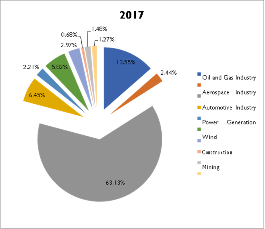 4.本报告涵盖的全球锻造市场的关键应用领域是汽车、农业、通用工业、航空航天等。其中,汽车是市场中领先的应用领域。汽车细分市场的领先份额归因于汽车行业的扩张,以满足对汽车的高需求。2017年,汽车行业占据了全球锻造市场近60%的份额。