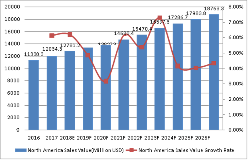 9.2.1 2013-2018年美国销售收入(百万美元)和增长率