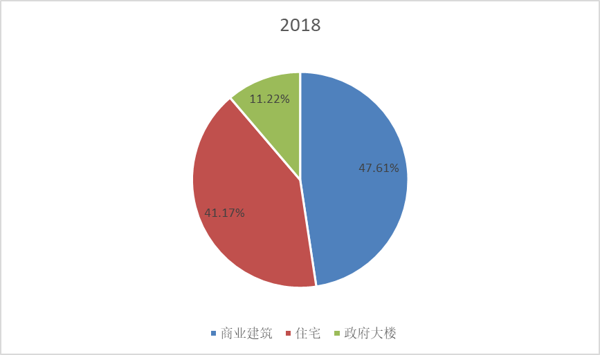 图:2018年全球智能建筑市场应用收入份额(%)