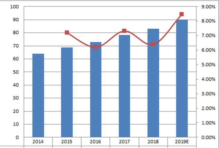 7.1中国电沉积铜箔产量、收入和增长率(2014-2019)