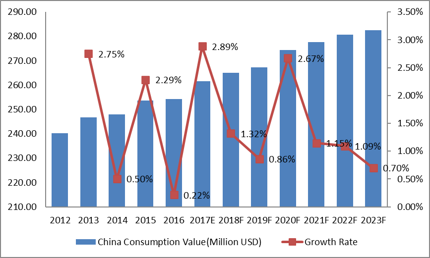 12.3.3中国脱硫化氢消费量(千吨)预测(2018-2023年)