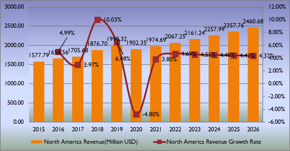 2.1.1北美基于PC的示波器市场规模和增长率(2015-2026)