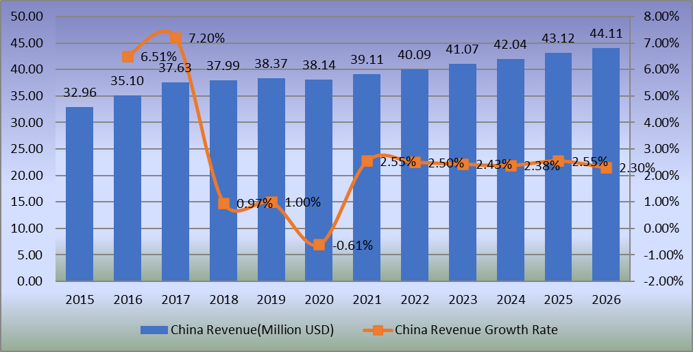 图:2014-2025年中国耐油涂层收入(百万美元)和增长率
