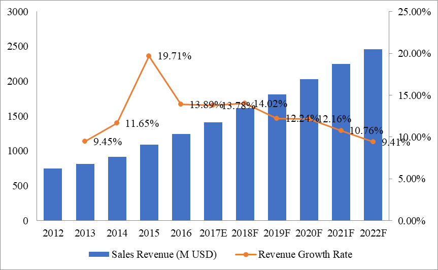 5.研究报告显示,2016年染发剂销售收入为228.8亿美元,预计2022年将达到378.3亿美元,2016年至2022年的复合年增长率为8.74%。2016年,欧洲的销售额占据了最高的市场份额(32.88%),其次是美国(28.56%)。