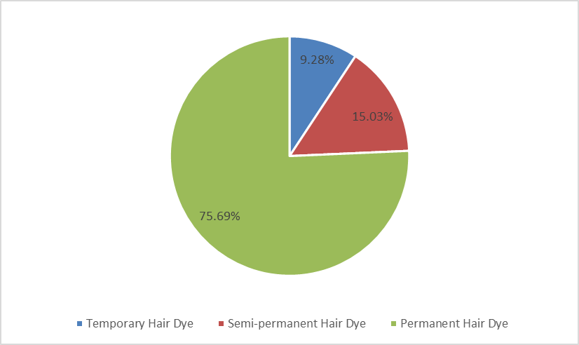 图:图2016年按类型(产品类别)划分的全球染发剂销售市场份额(%)